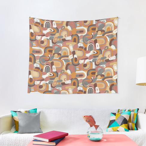 Arches is a pattern in rich earth tones of arches, ovals, and other geometric shapes, hand-drawn using pastels. The design is now available on a variety of products in my Redbubble shop and coming soon to my Society6 and Spoonflower shops.
