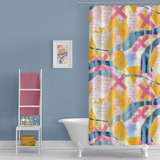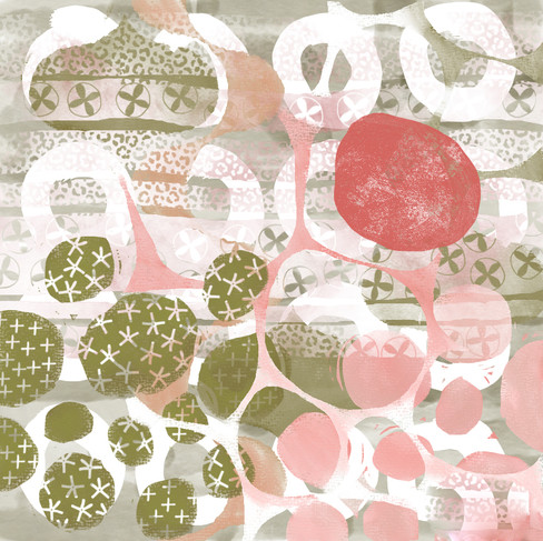 In some cases, I'll take the resulting artwork and see how it would look turned into a repeating pattern and applied to a mock-up. Here is an example a finished artwork, the result of turning it into a half-drop repeating pattern, and a mock-up of the design.